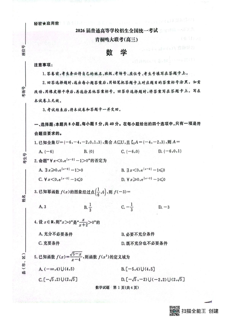 河南省青桐鸣2025-2026学年高三上学期10月联考 数学.pdf