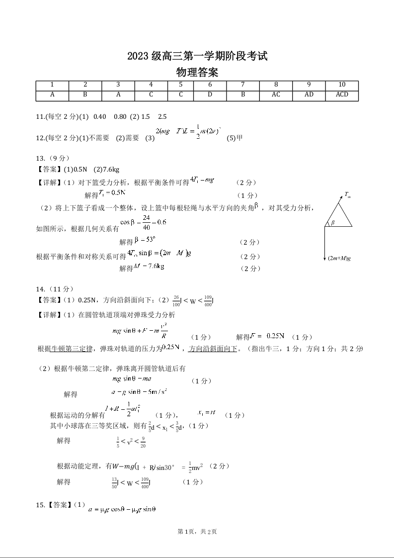 汕头市金山中学2023级高三第一学期阶段考试 物理答案.docx