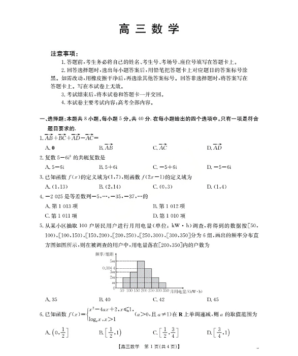 广东省部分学校2026届高三上学期10月联考 数学试题(含答案).pdf