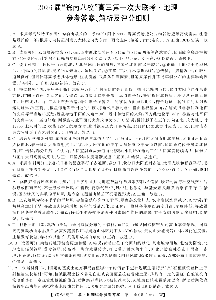 2026届皖南八校高三第一次大联考 地理答案.pdf