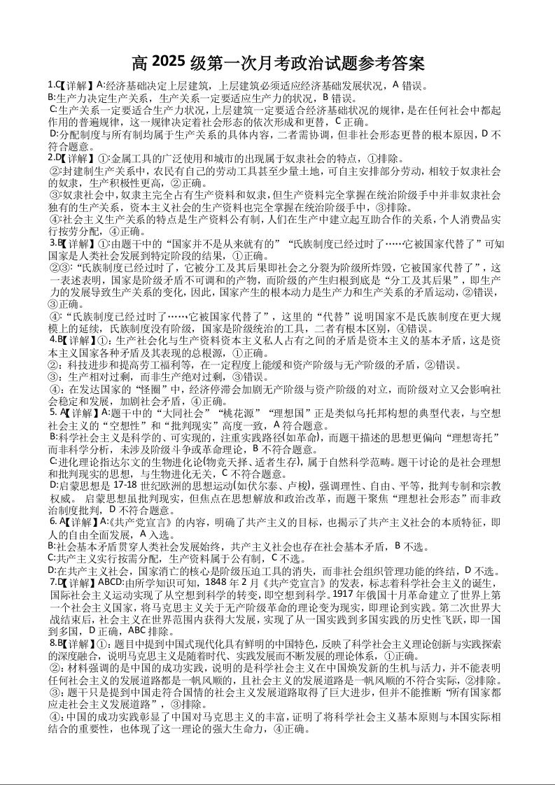 射洪中学高2025级高一上期第一次月考 政治答案.docx