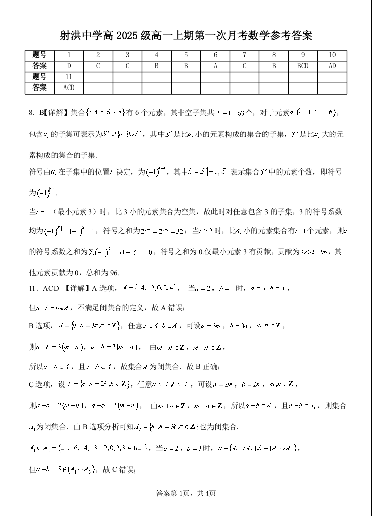 射洪中学高2025级高一上期第一次月考 数学答案.docx