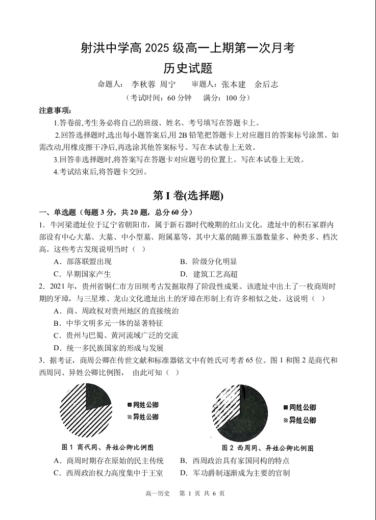 射洪中学高2025级高一上期第一次月考 历史.docx