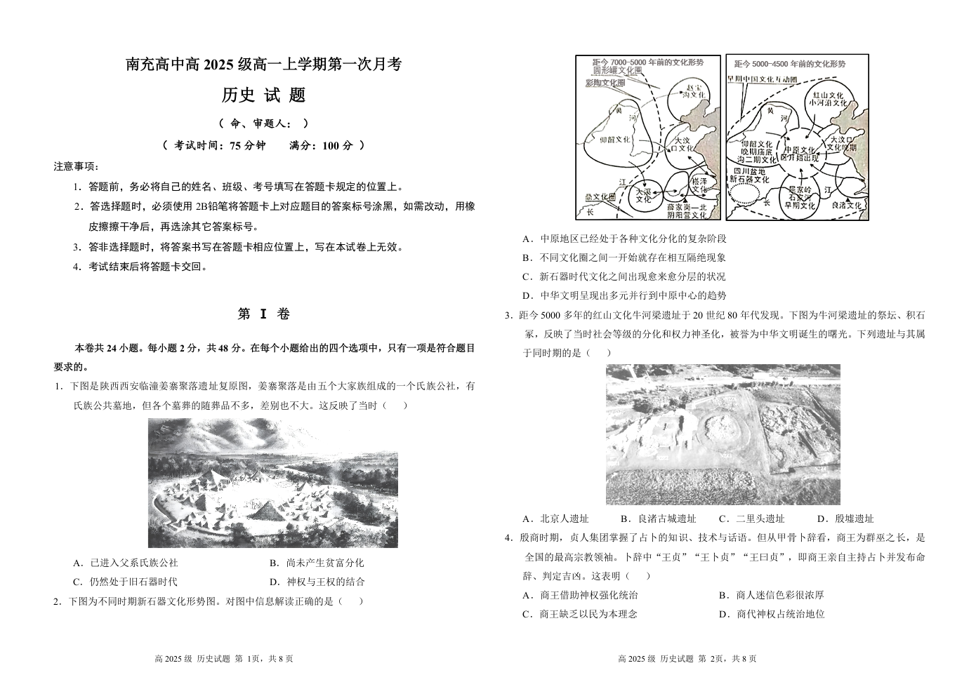 南充高中高2025级高一(上)第一次月考 历史.doc
