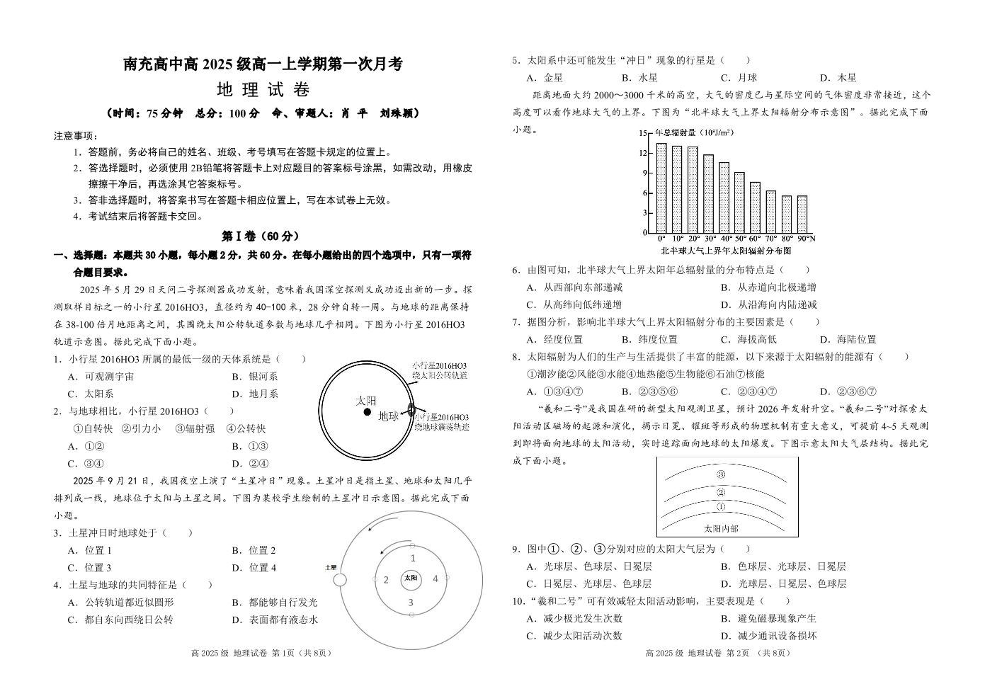 南充高中高2025级高一(上)第一次月考 地理.pdf