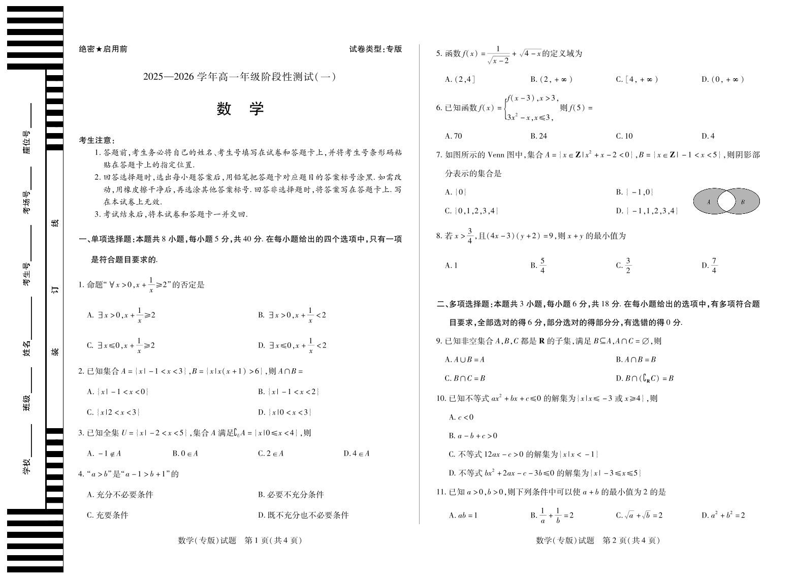 陕西省天一大联考2025-2026学年高一年级阶段性测试(一)数学.pdf