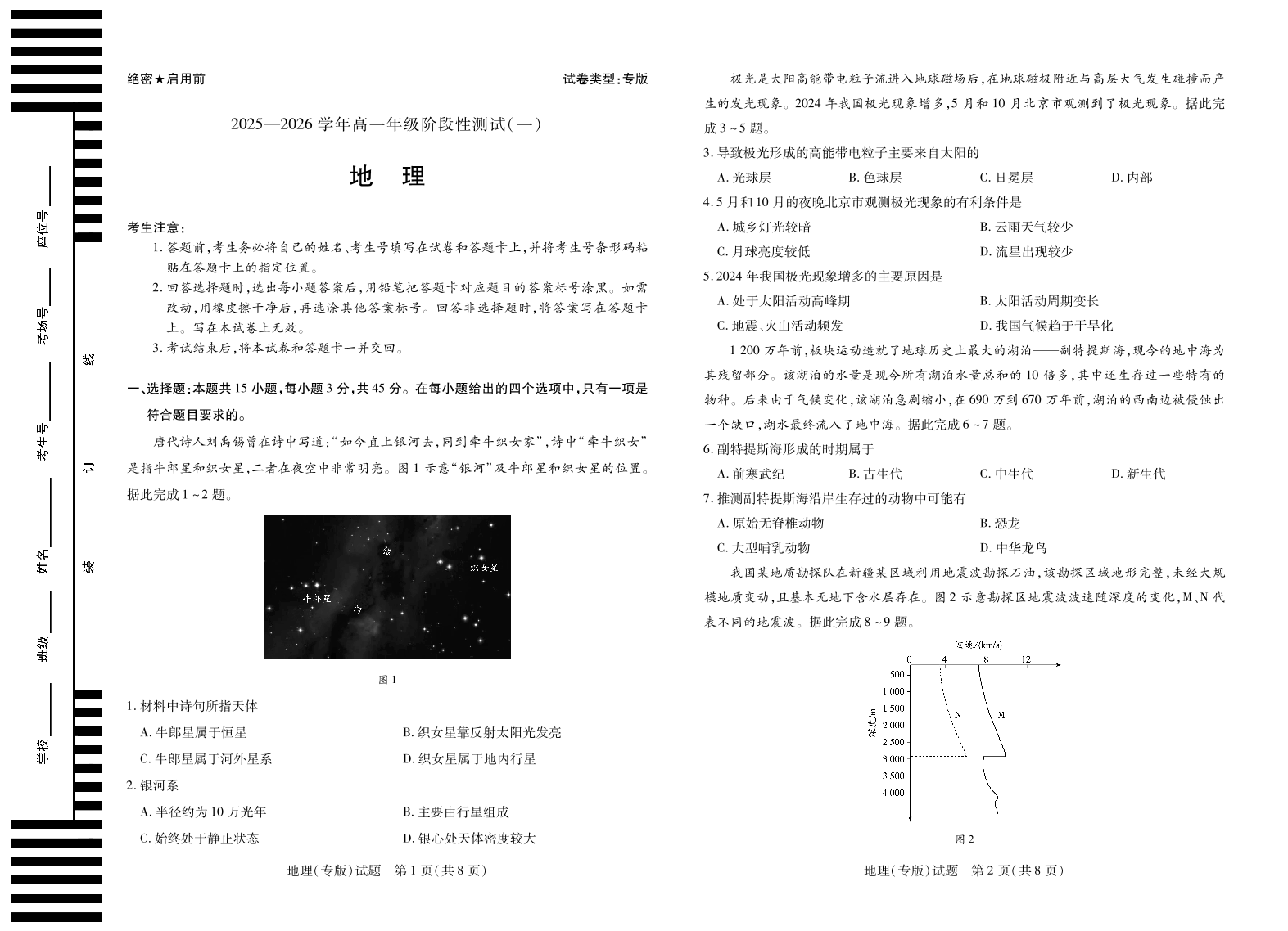 陕西省天一大联考2025-2026学年高一年级阶段性测试(一)地理.pdf