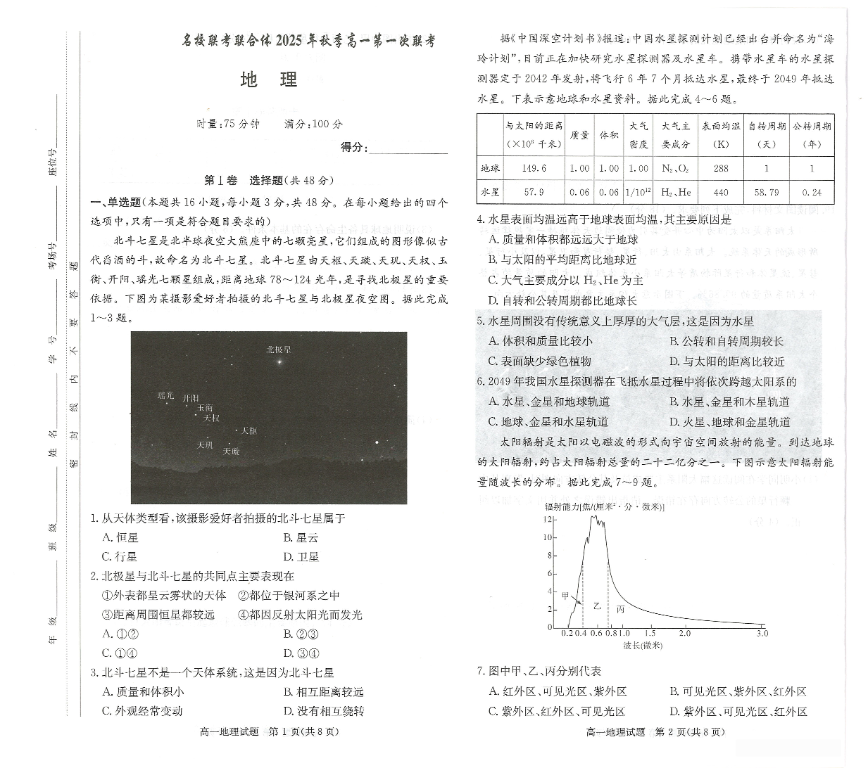 湖南名校联考联合体2025年秋季高一第一次联考 地理.pdf