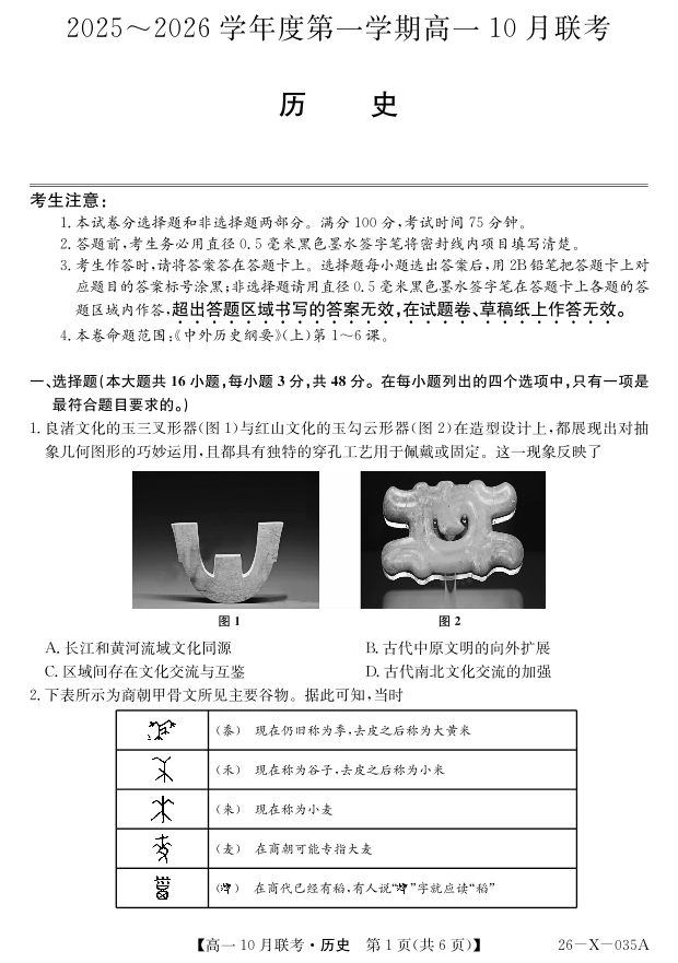 安徽省县中联盟2025~2026学年度第一学期高一10月联考 历史.pdf