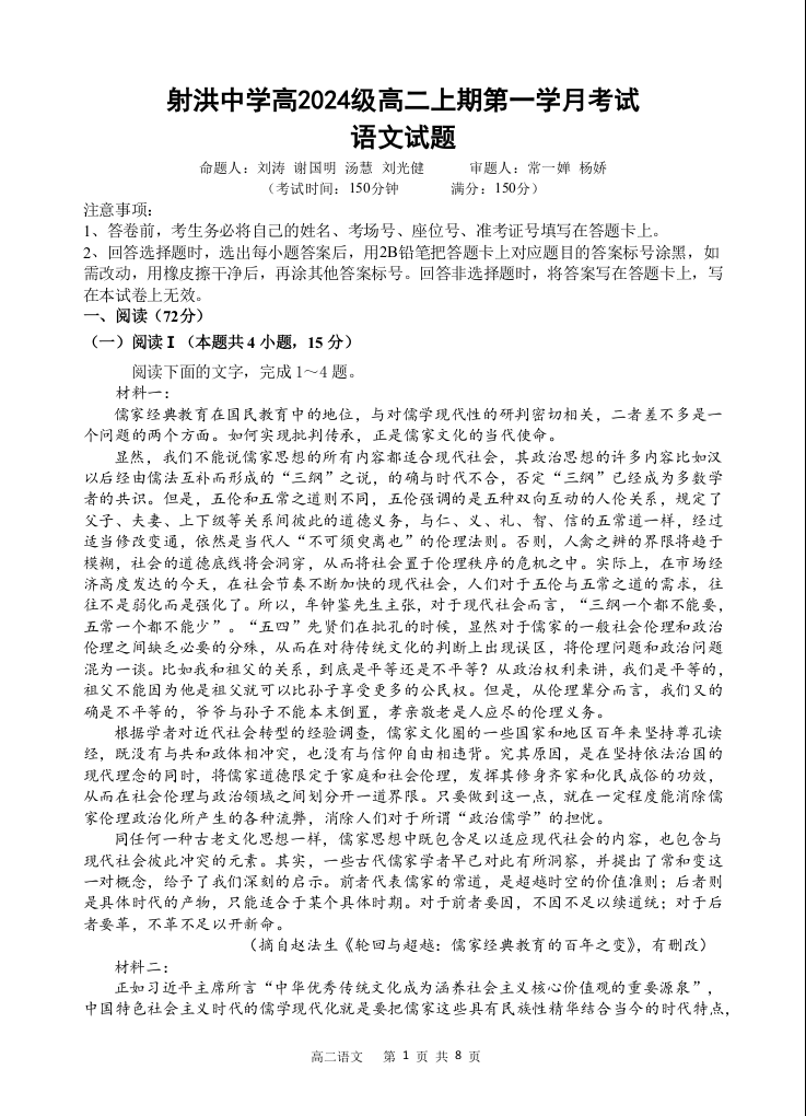 四川省遂宁市射洪中学2025-2026学年高二上学期10月月考 语文.docx