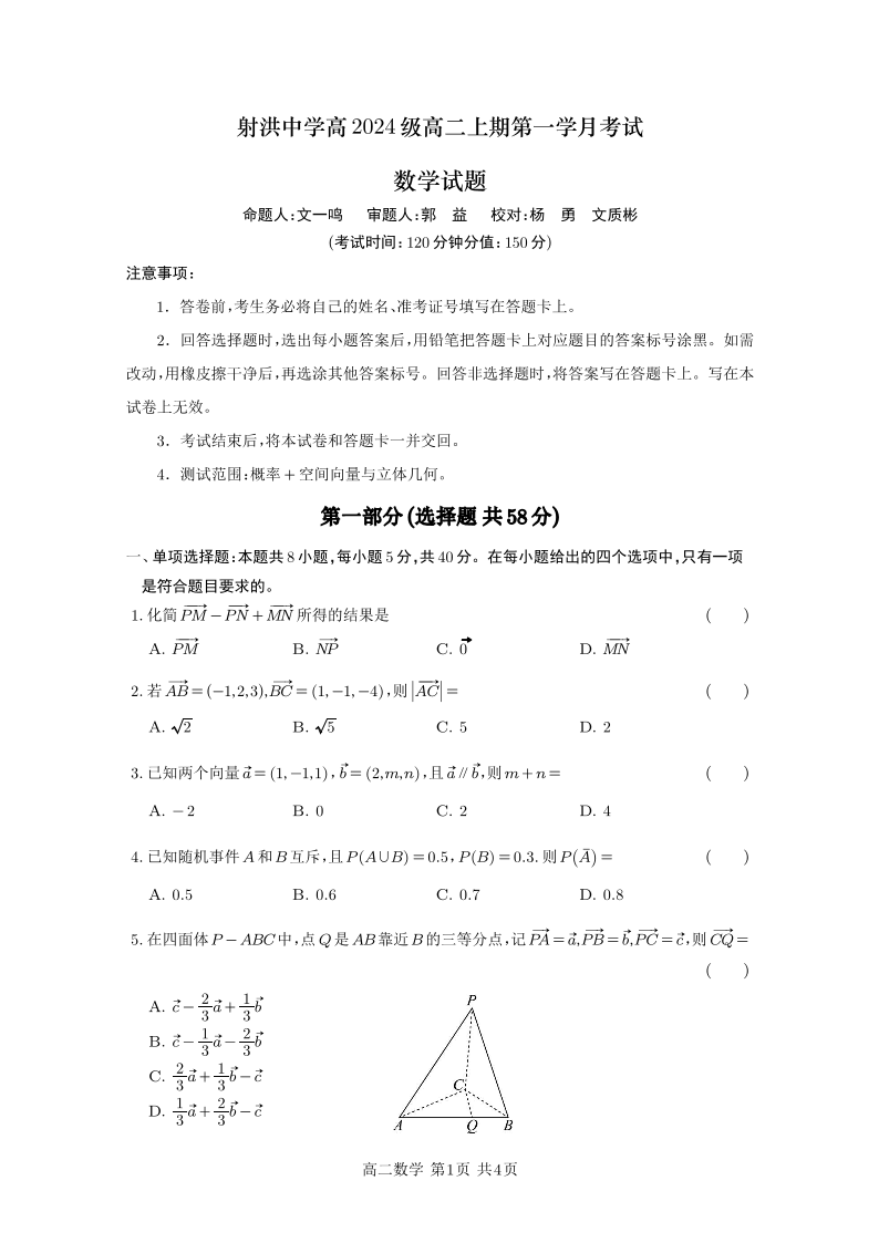 四川省遂宁市射洪中学2025-2026学年高二上学期10月月考 数学.pdf