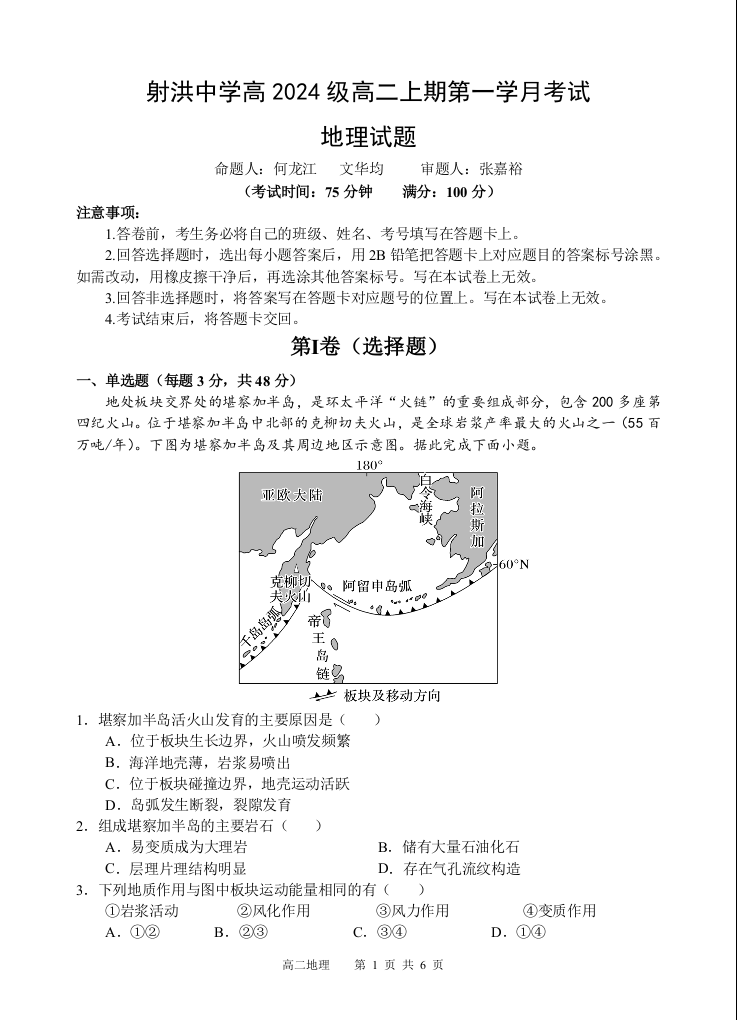 四川省遂宁市射洪中学2025-2026学年高二上学期10月月考 地理.docx