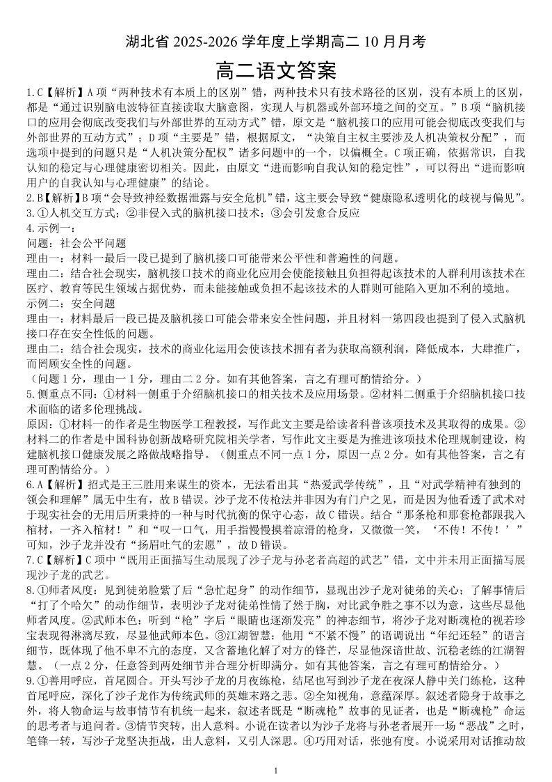 新八校联考2025-2026学年度上学期高二10月月考 语文答案.pdf