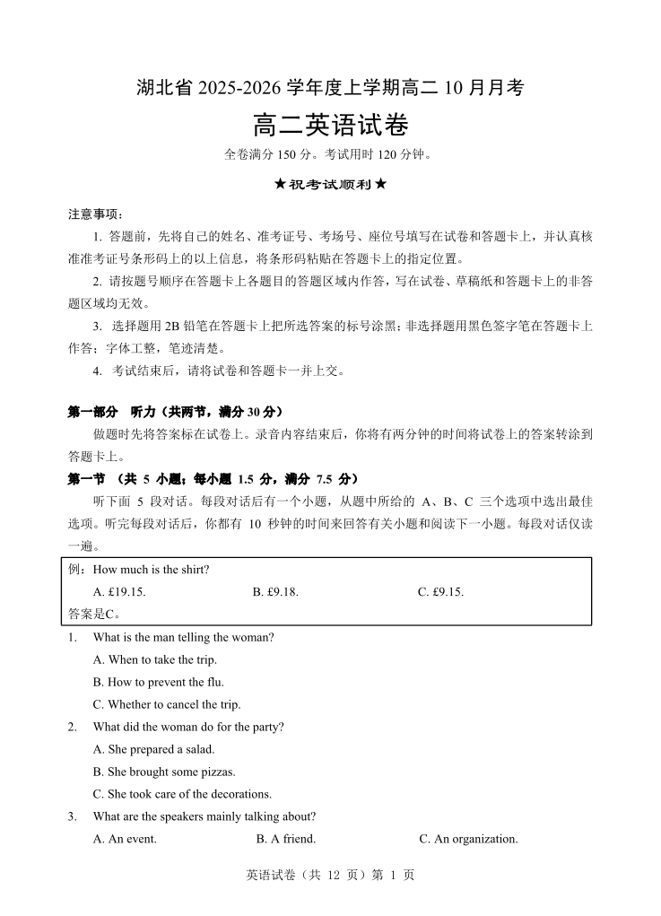 新八校联考2025-2026学年度上学期高二10月月考 英语.pdf