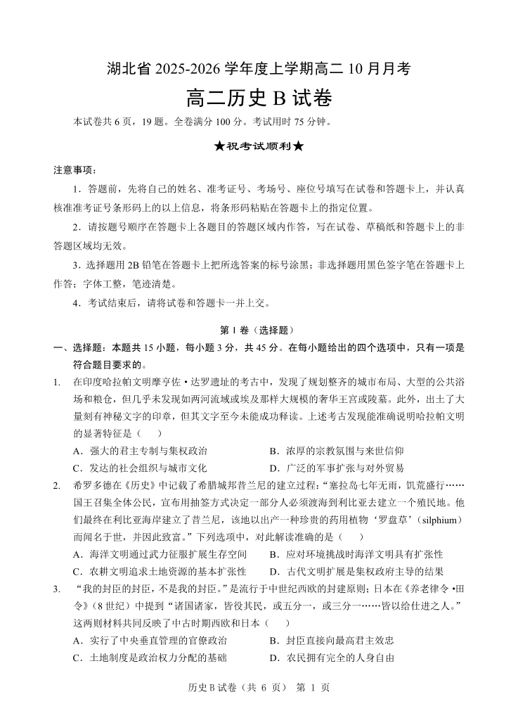 新八校联考2025-2026学年度上学期高二10月月考 历史B.pdf