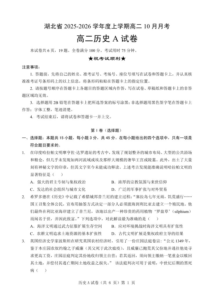新八校联考2025-2026学年度上学期高二10月月考 历史A.pdf