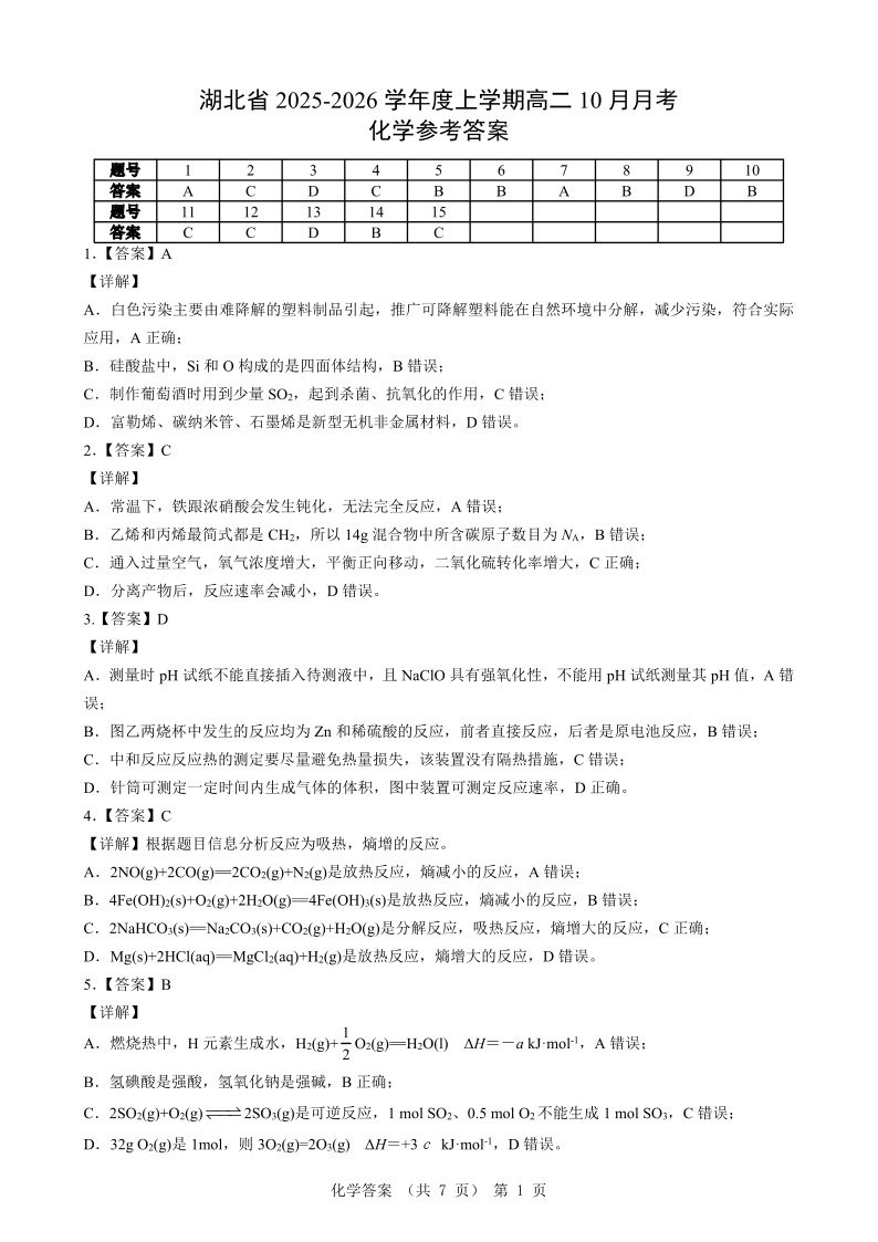 新八校联考2025-2026学年度上学期高二10月月考 化学答案.pdf