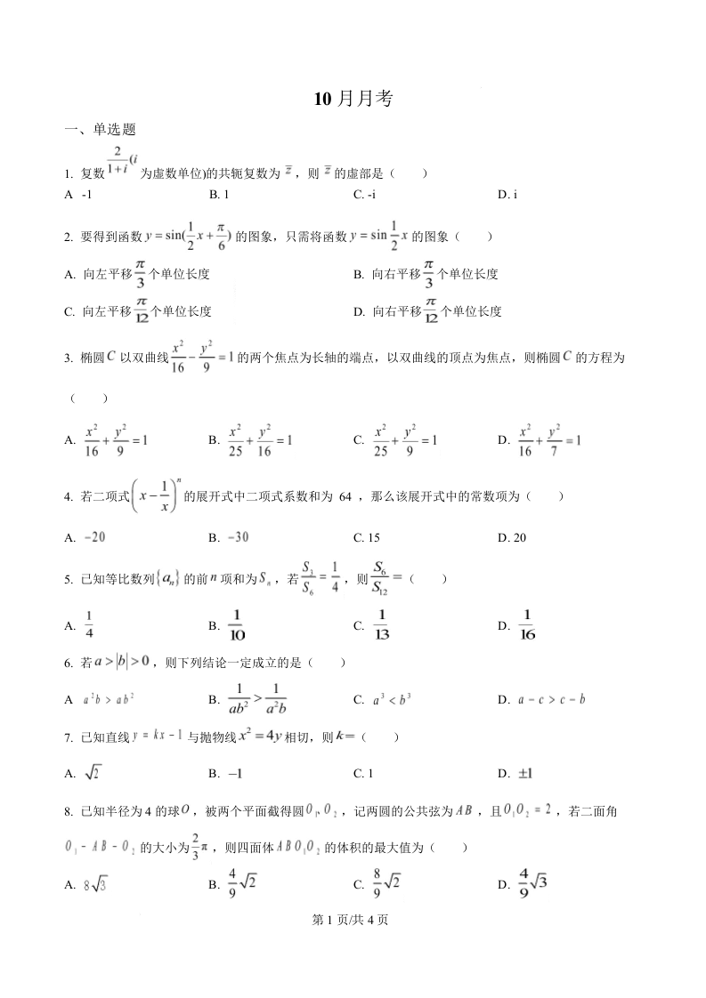 江苏省南京市金陵中学2026届高三上学期10月月考 数学.docx