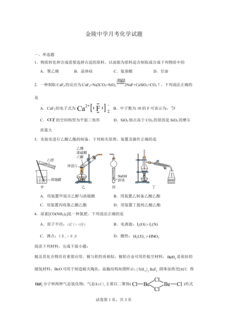 江苏省南京市金陵中学2026届高三上学期10月月考 化学.docx