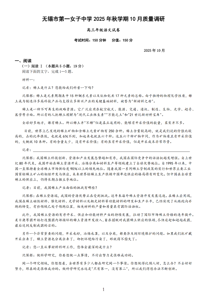江苏省无锡市三校2025年秋学期10月质量调研 语文.pdf