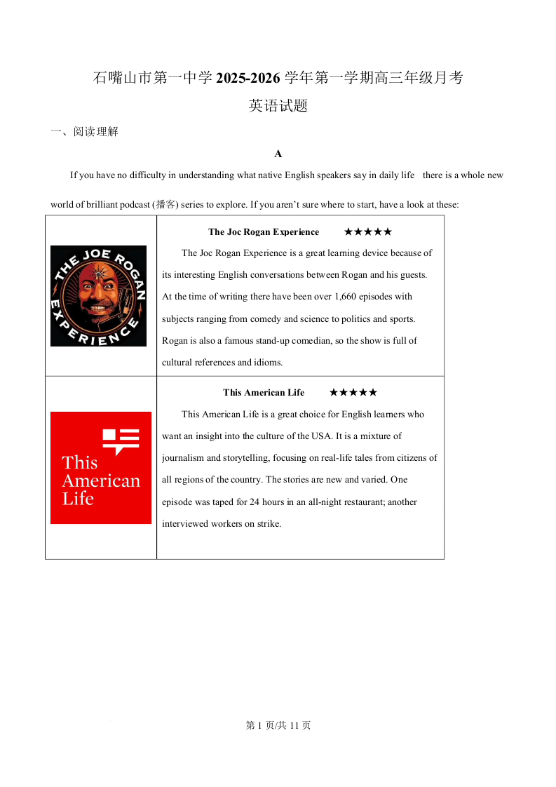 宁夏石嘴山市第一中学2026届高三上学期10月月考 英语.docx