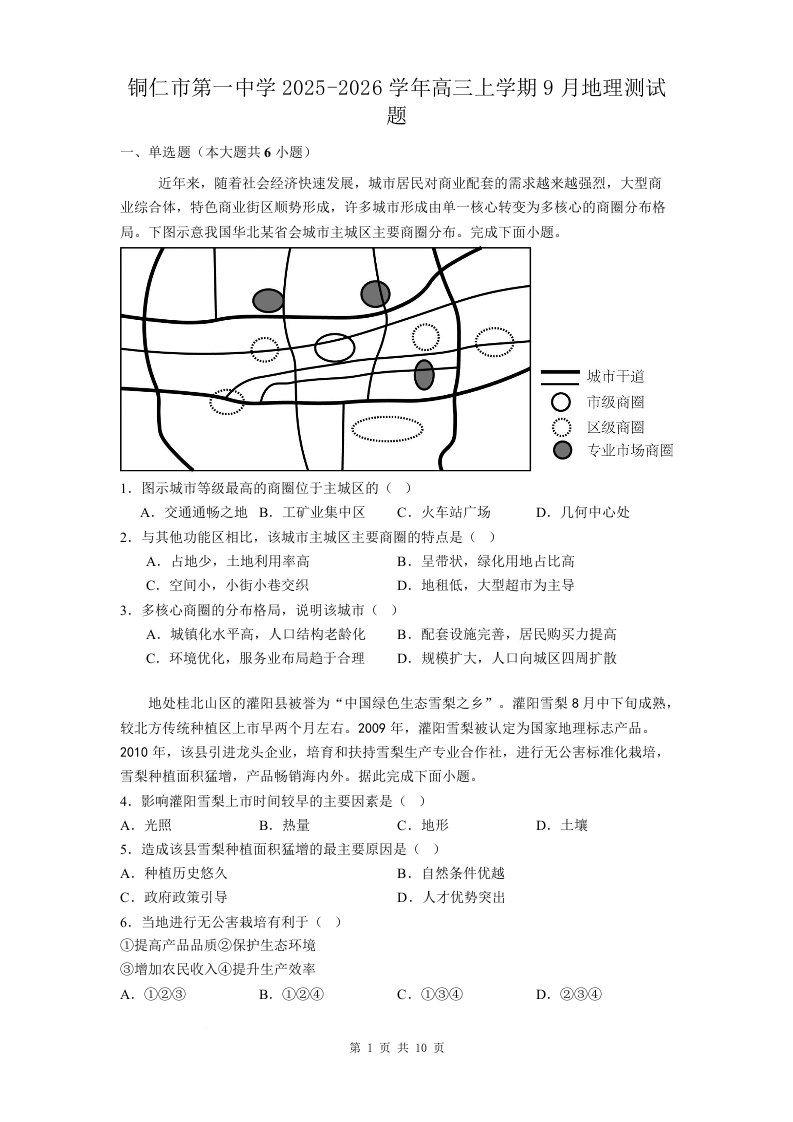 贵州省铜仁第一中学2026届高三上学期10月月考 地理试题(含答案).docx