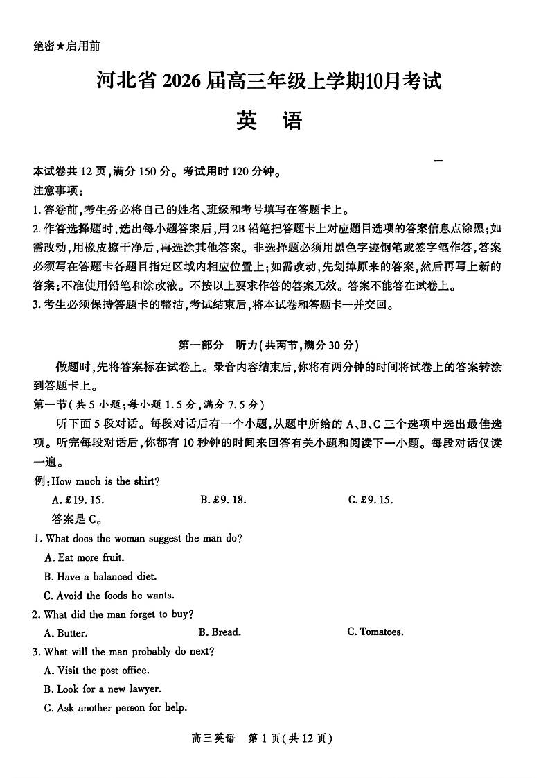 河北省示范高中联盟2026届高三年级阶段性联合测评 英语试题(含答案).pdf