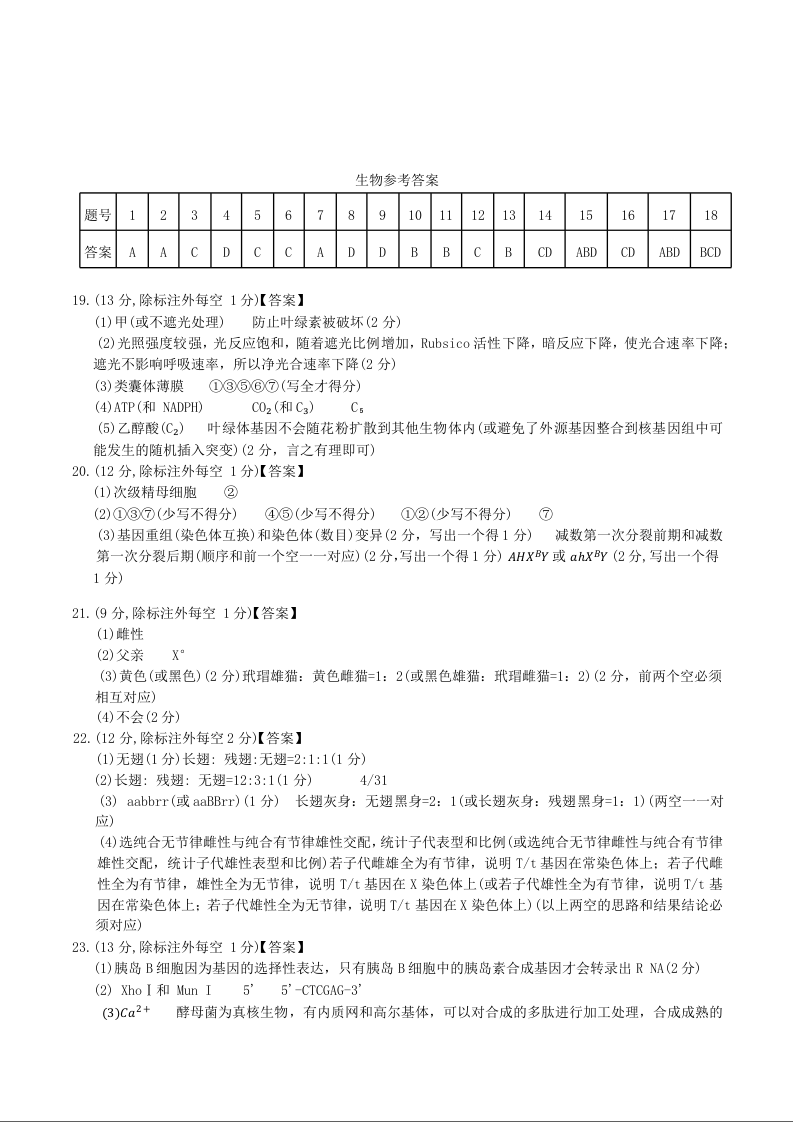 河北省示范高中联盟2026届高三年级阶段性联合测评 生物答案.docx
