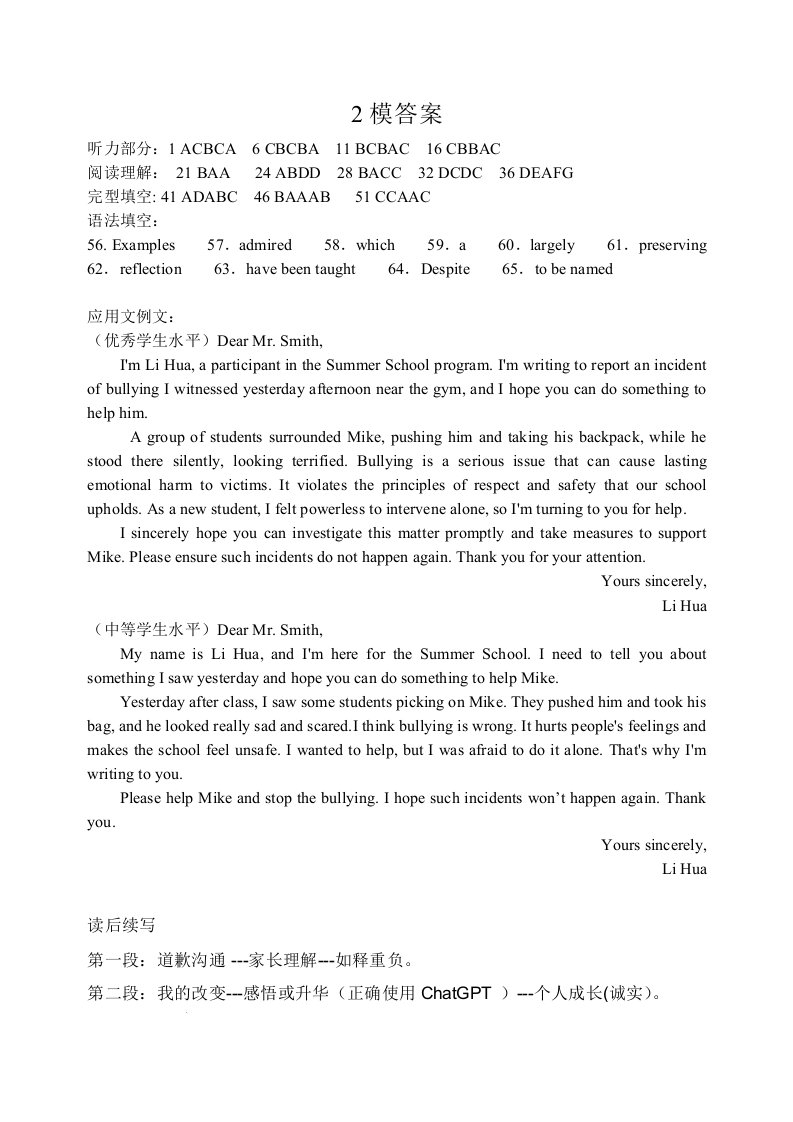 2025-2026学年度上学期高中学段高三联合考试 英语答案.docx