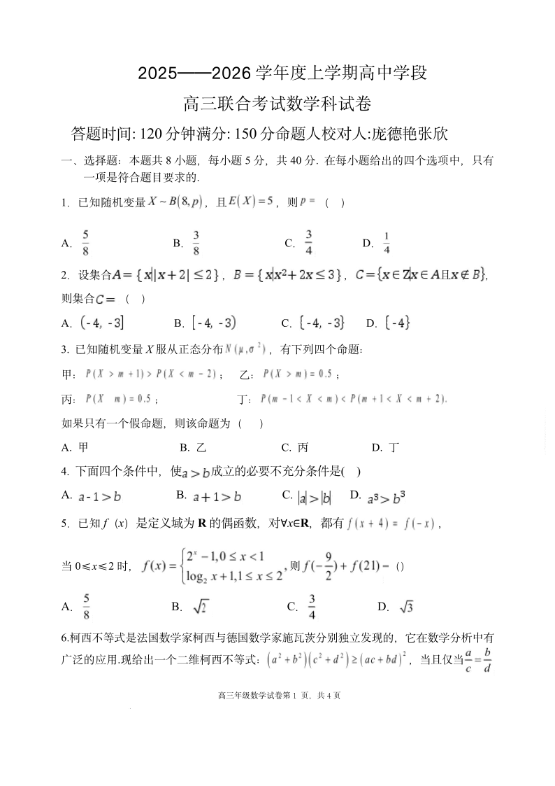 2025-2026学年度上学期高中学段高三联合考试 数学.pdf