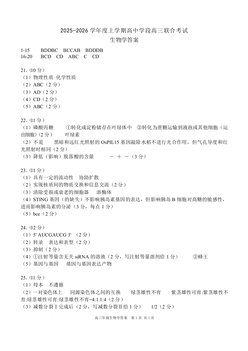2025-2026学年度上学期高中学段高三联合考试 生物答案.docx