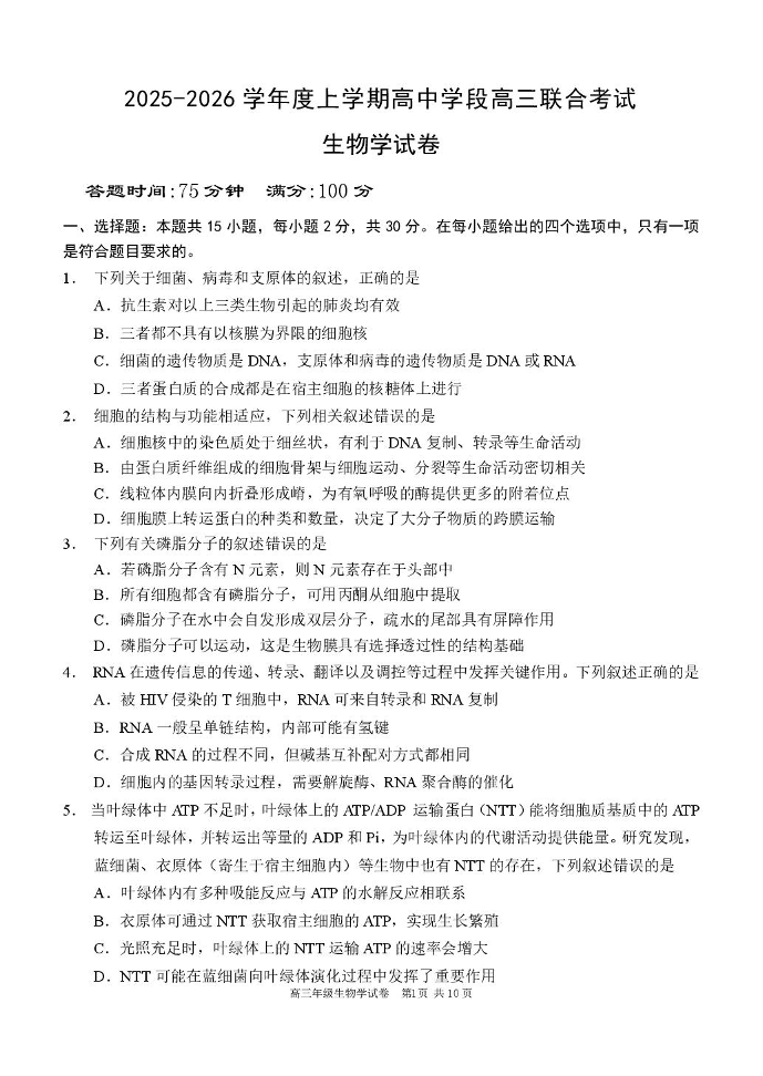 2025-2026学年度上学期高中学段高三联合考试 生物.pdf