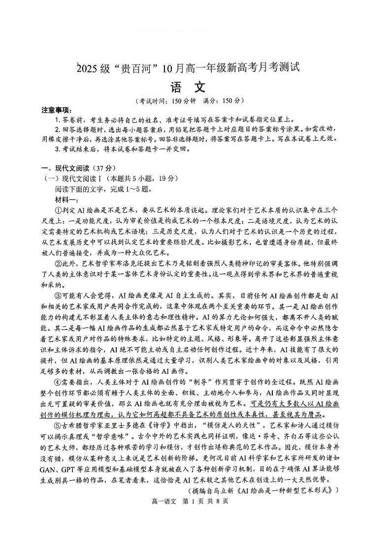 2025级”贵百河“10月高一年级新高考月考测试 语文.pdf