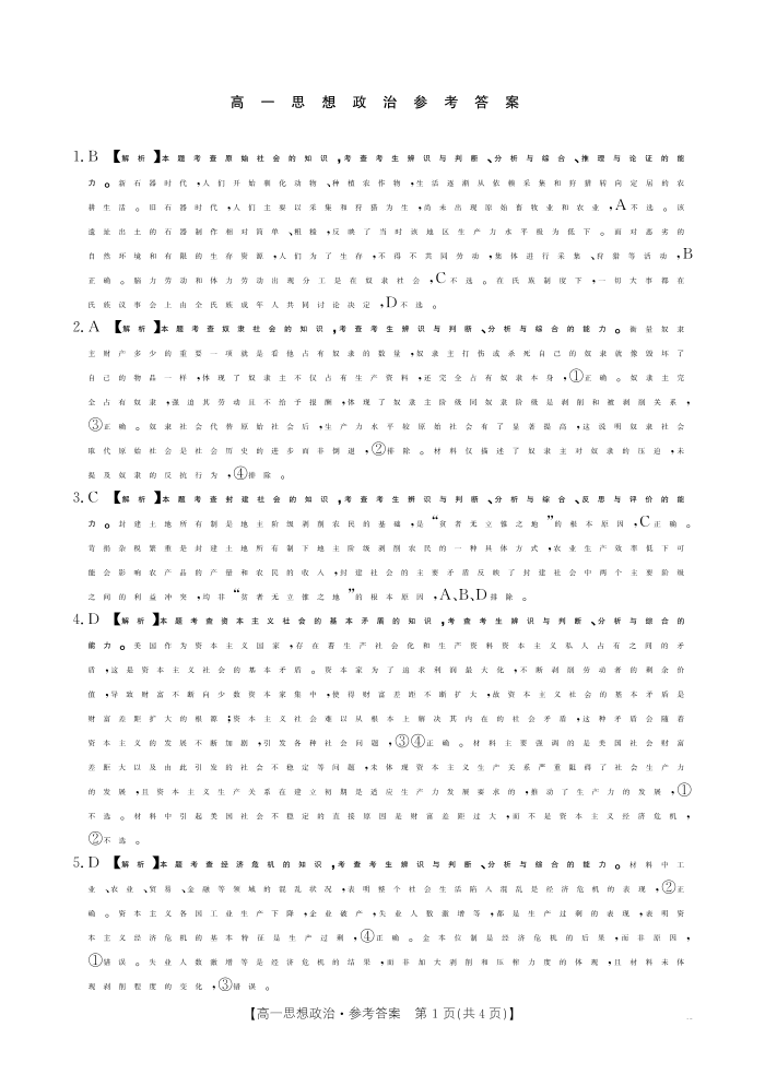 广东省2028届高一年级10月份联考 政治答案.pdf