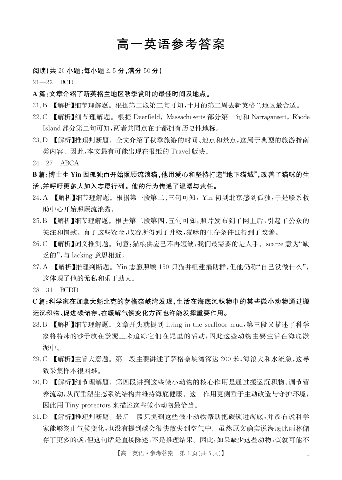 广东省2028届高一年级10月份联考 英语答案.pdf