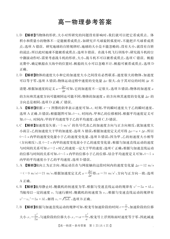 广东省2028届高一年级10月份联考 物理答案.pdf