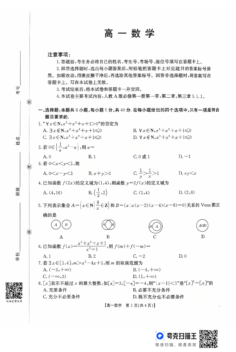 广东省2028届高一年级10月份联考 数学.pdf