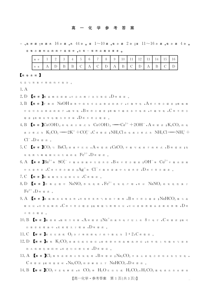广东省2028届高一年级10月份联考 化学答案.pdf