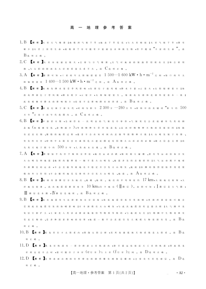 广东省2028届高一年级10月份联考 地理A2答案.pdf