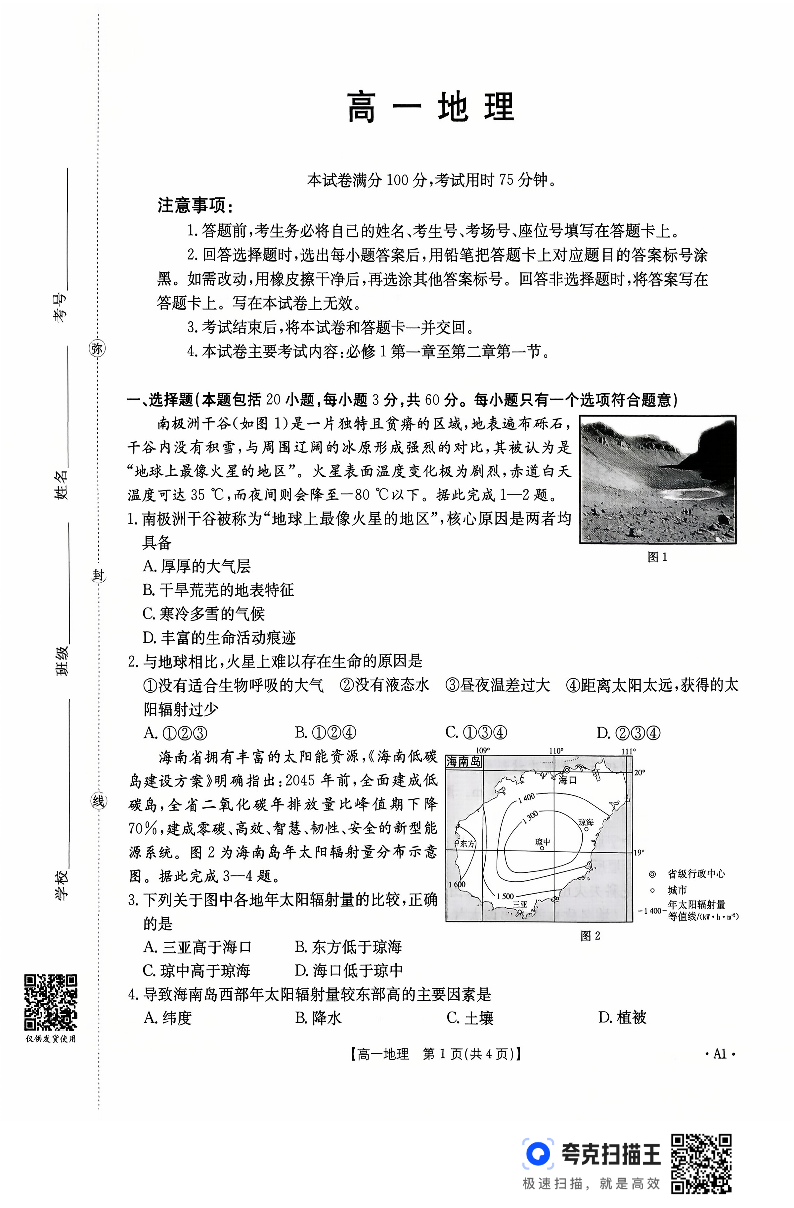 广东省2028届高一年级10月份联考 地理A1.pdf