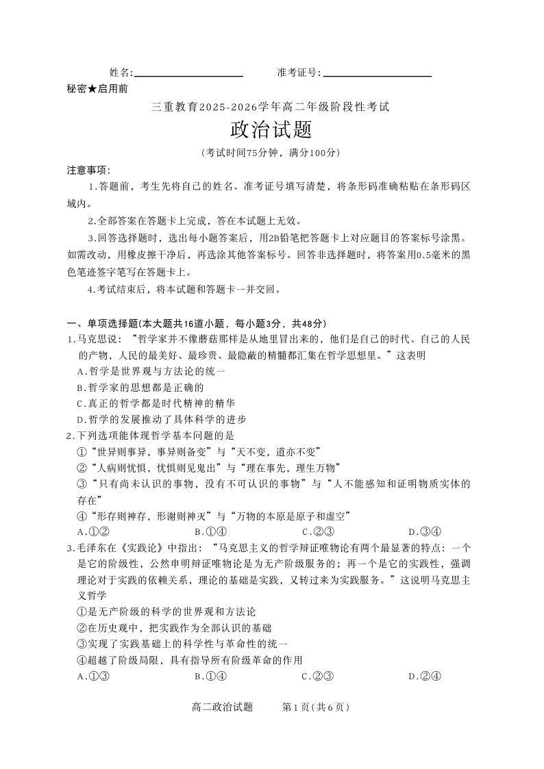 山西省三重教育2025-2026学年高二年级10月阶段性考试 政治.pdf