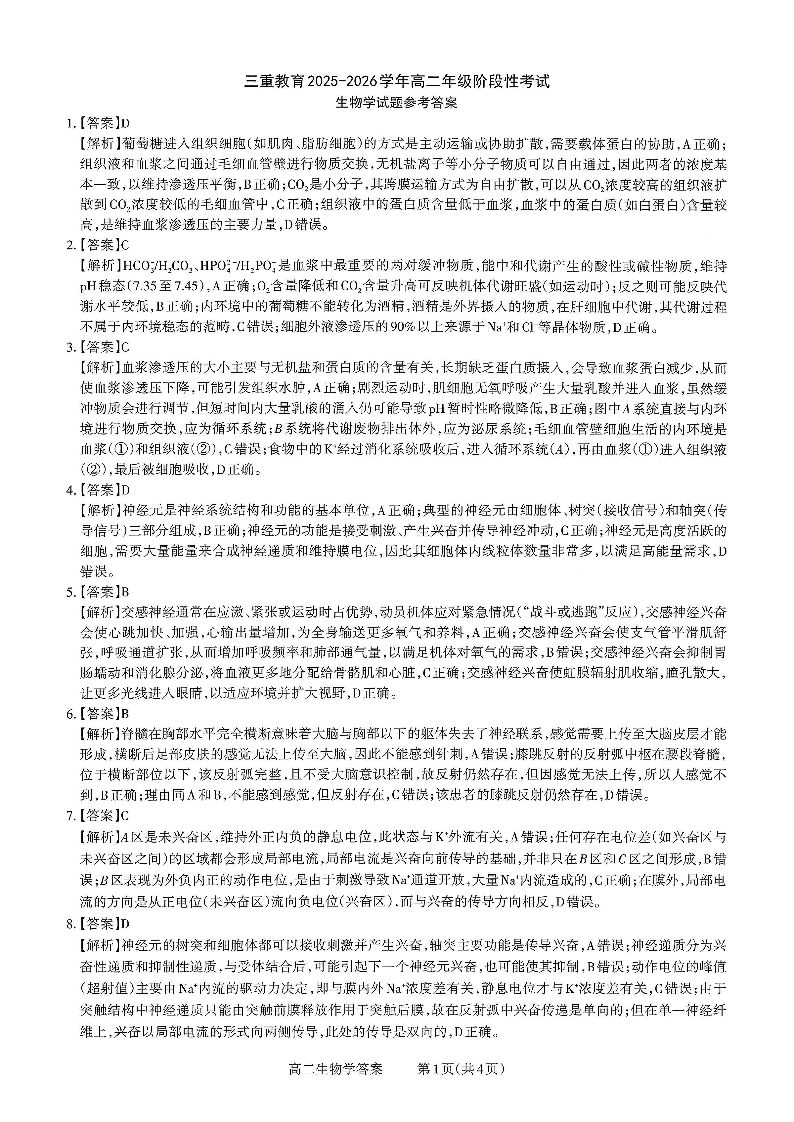 山西省三重教育2025-2026学年高二年级10月阶段性考试 生物答案.pdf