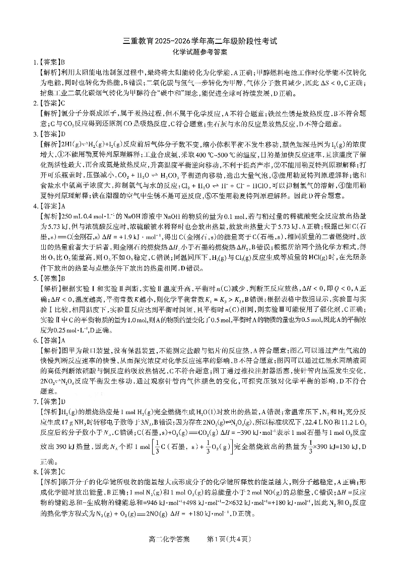 山西省三重教育2025-2026学年高二年级10月阶段性考试 化学答案.pdf