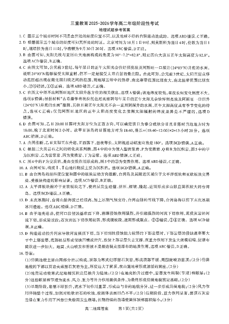 山西省三重教育2025-2026学年高二年级10月阶段性考试 地理答案.pdf