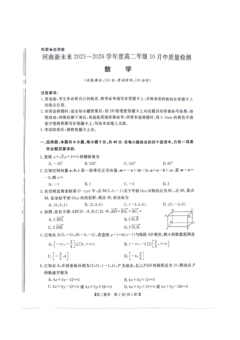 河南省新未来联考2025-2026学年高二10月中质量检测 数学.pdf