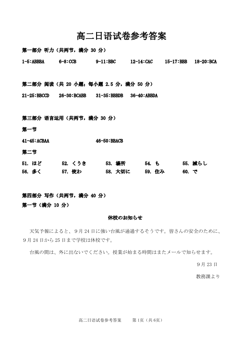 广东省2027届高二年级10月份联考 日语答案.pdf