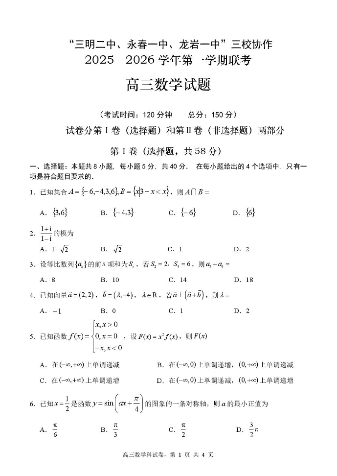 福建省三校协作2026届高三上学期10月联考 数学试题(含答案).pdf