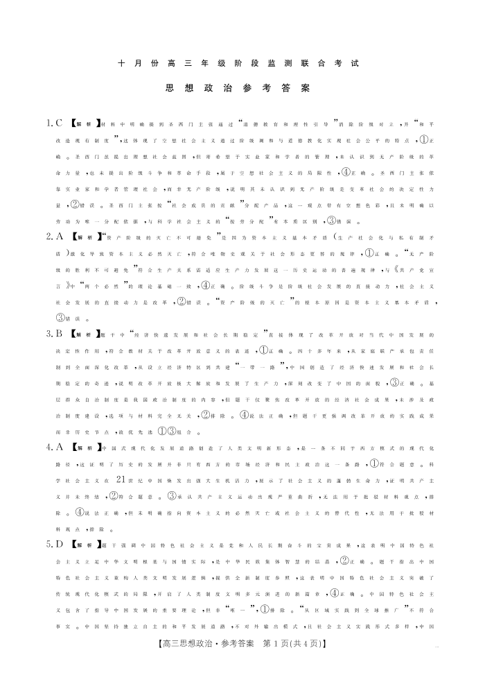 湖南省十月份高三年级阶段监测联合考试 政治答案.pdf