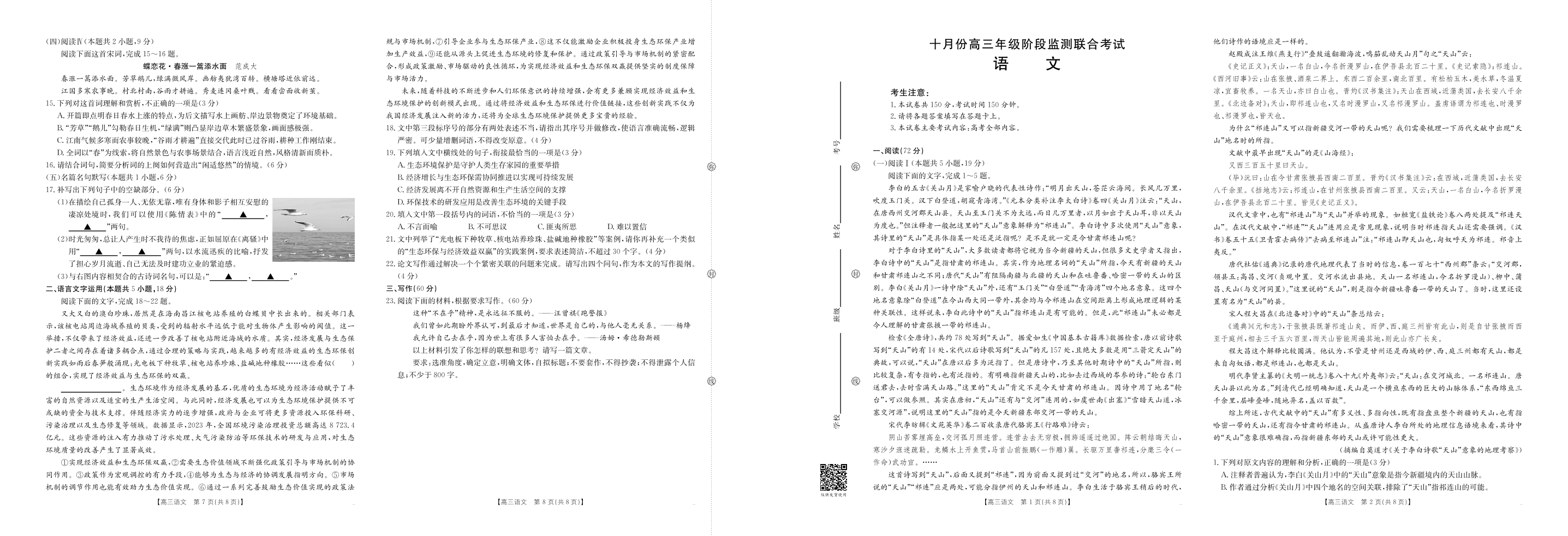 湖南省十月份高三年级阶段监测联合考试 语文.pdf
