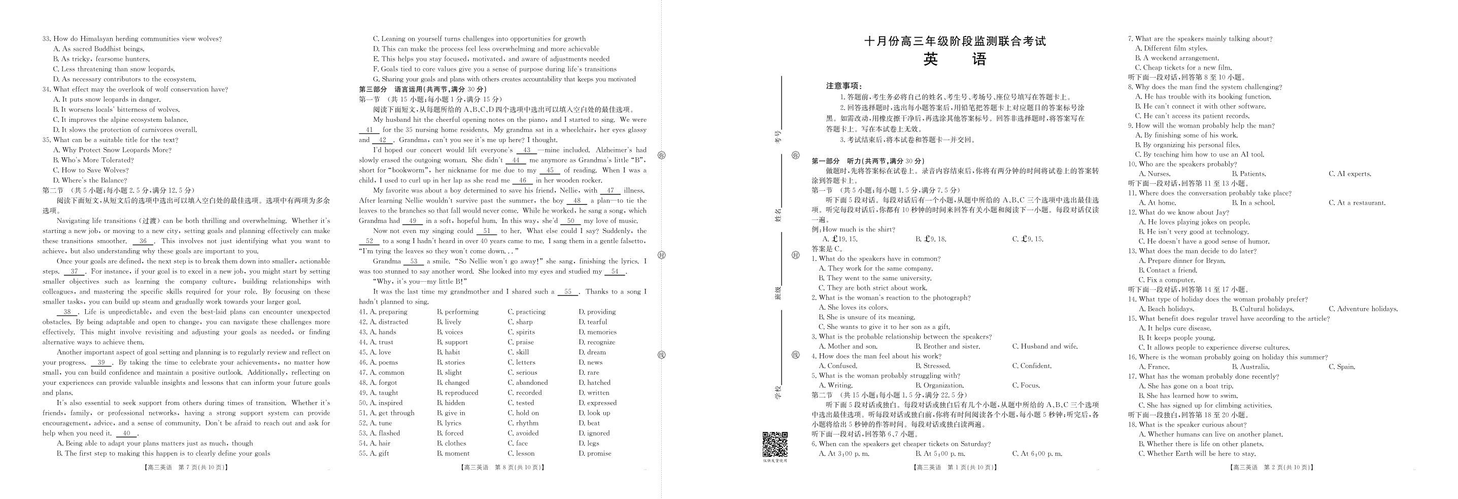 湖南省十月份高三年级阶段监测联合考试 英语.pdf